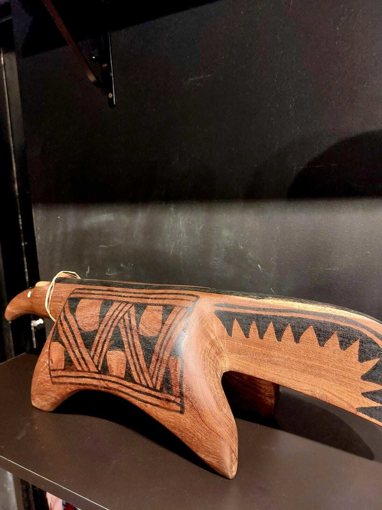 Feitos de um único tronco de árvores, os artistas Waurá esculpem formas de animais como tamanduá, tartaruga, onça, arraia e outros animais. As cores dos bancos são obtidas através de pigmentos naturais o vermelho vem do urucum e do pau-mãwatan; e o preto do pau-Iurilo e do carvão.