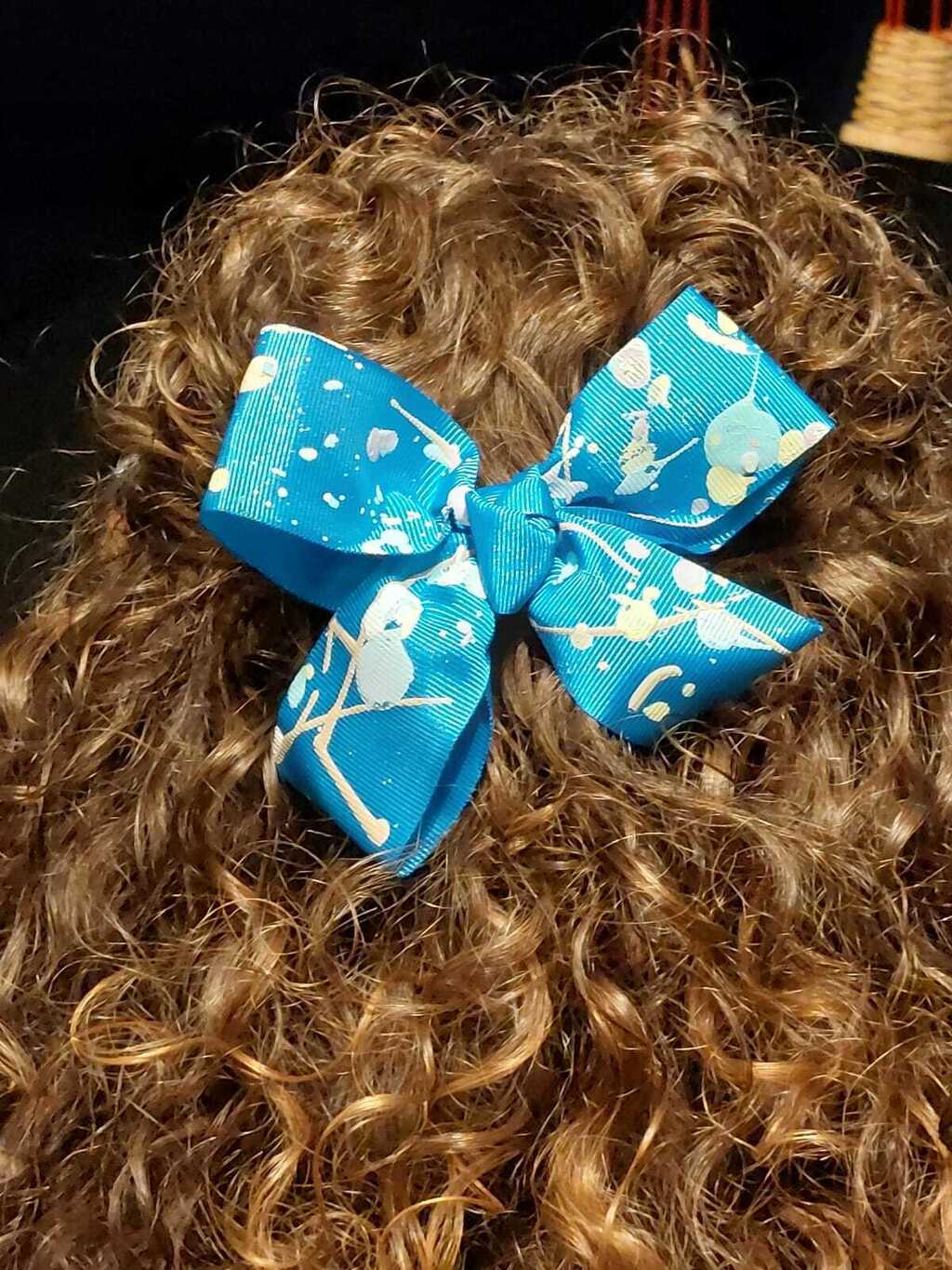 Laço azul tiffany e branco - Laços de Artista. Inspirado nas obras do Pollock